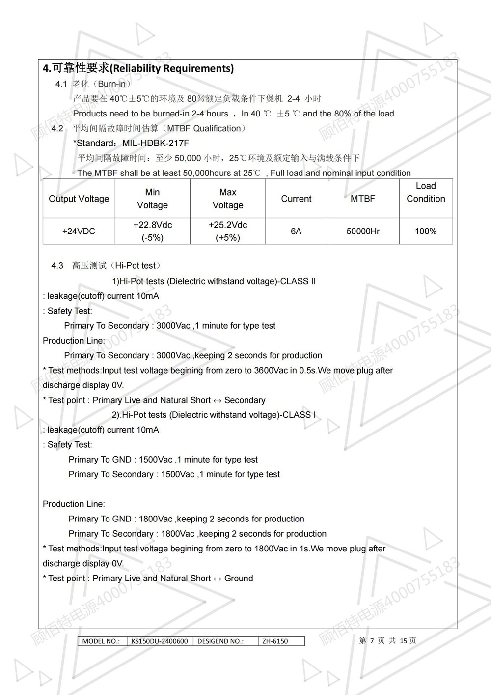 24V6A電源適配器帶PFC電路144W(連續(xù)輸出功率)開關(guān)電源的電氣性,結(jié)構(gòu)性及環(huán)境等要求。